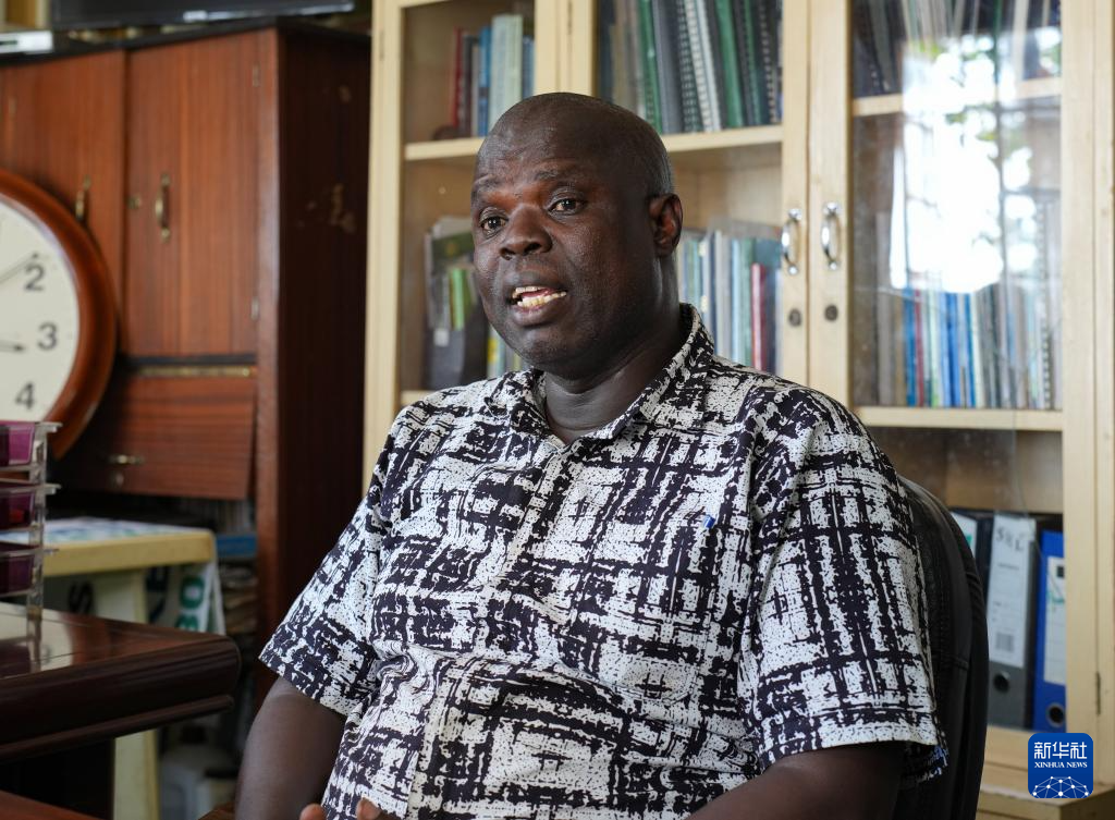 2月19日,在肯尼亚基苏木,“维多利亚湖之友”主任葛弗雷·奥贡达接受新华社专访。新华社记者 李亚辉 摄