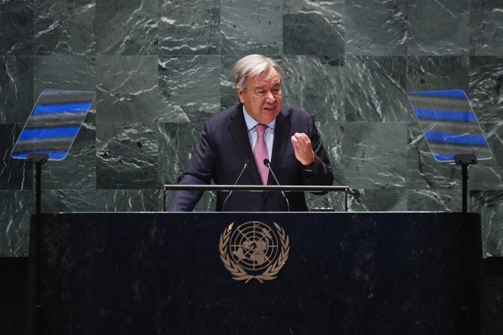9月22日,在位于纽约的联合国总部,联合国秘书长古特雷斯在联合国未来峰会上致辞。新华社记者李睿摄