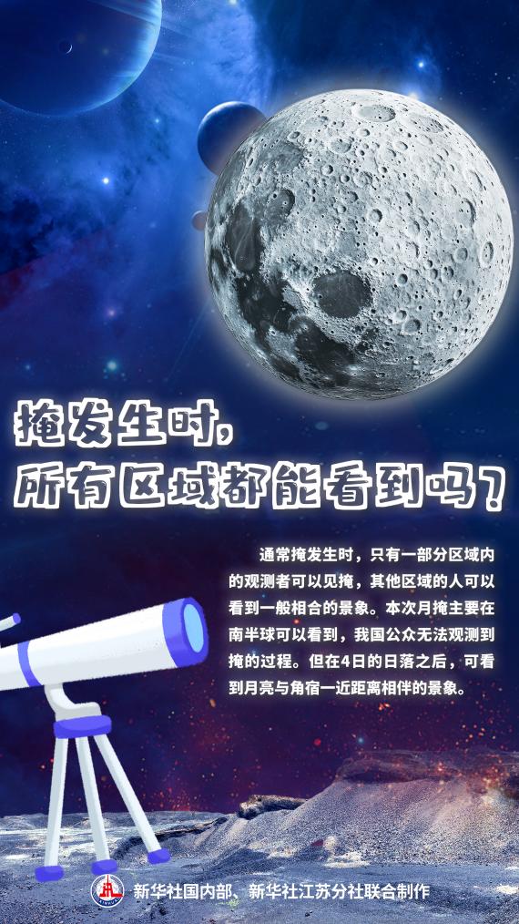 月掩现象发生时,并非所有区域都能看到。4日发生的月掩角宿一主要在南半球可以看到,我国公众无法观测到掩的过程。但在4日的日落之后,可看到月亮与角宿一近距离相伴的景象。随着时间推移,月亮和角宿一会逐渐远离,但这种距离变化肉眼难以察觉,如果对比日落和月落时拍摄的照片,能更清晰地看到它们相对距离的变化。“31日月掩角宿一发生时,对我国公众来说,月亮和恒星在傍晚时的距离则更近。”王科超说。