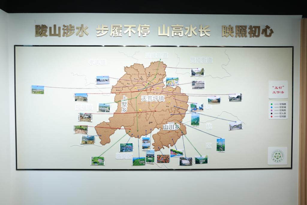 工作站墙上,一幅点缀各色图钉的大余村辖区地图引人注目。这是张忠心探索出的“五钉工作法”——“绿色钉”钉生态巡查线路,“蓝色钉”钉重点监督区域,“紫色钉”钉风险隐患,“黑色钉”钉前科人员,“红色钉”钉未解决的问题。这份地图构建起了“巡查-预警-处置-监督”的全链条生态守护机制,也生动记录着生态警长们的日常工作。