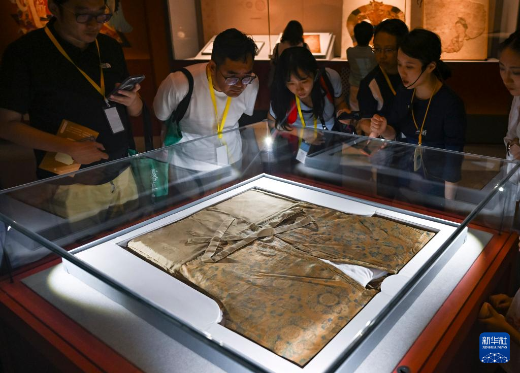 6月17日,在上海奉贤博物馆,媒体人员在展品前驻足观看。