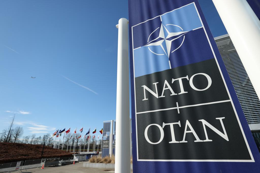 这是3月14日在比利时布鲁塞尔拍摄的北约总部一角。新华社记者赵丁喆摄