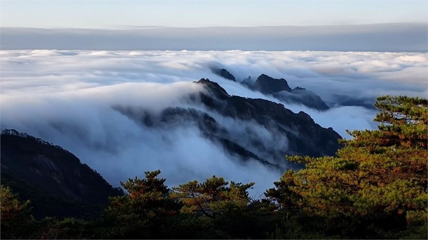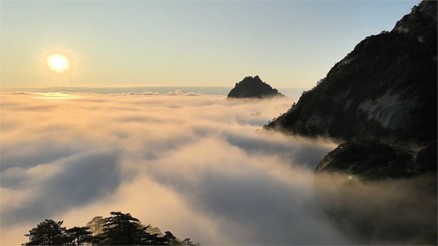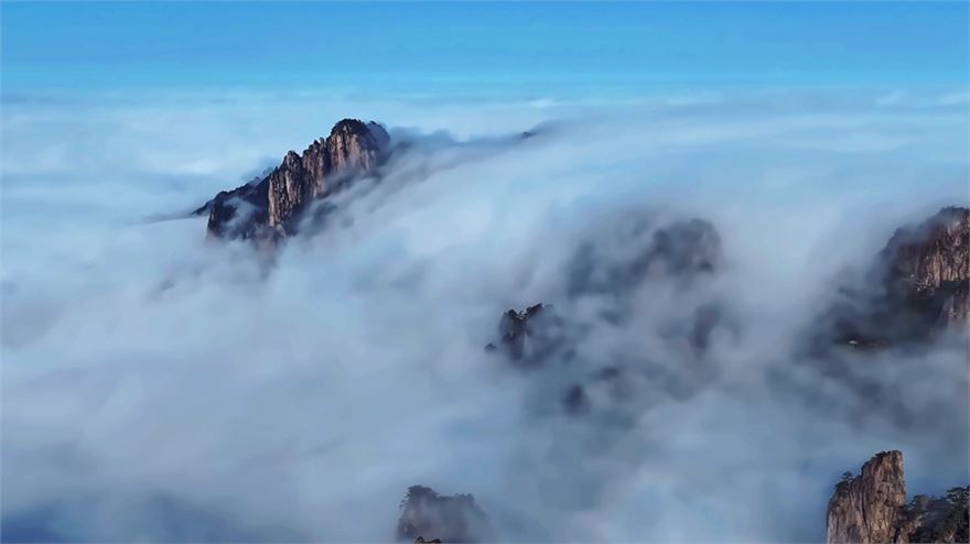 初冬时节,安徽黄山风景区出现大片云海,吸引众多游客打卡拍照。黄山之巅云海波涛翻滚,奇峰怪石若隐若现,宛如一幅流动的水墨画卷。