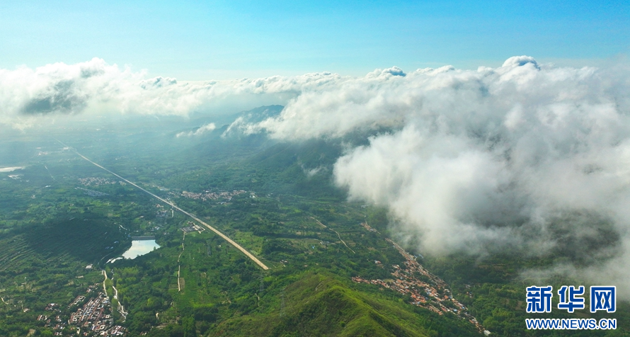 邹平市黄山街道西部山区郁郁葱葱的山林包裹着山村(无人机照片)。新华网发(董乃德 摄)