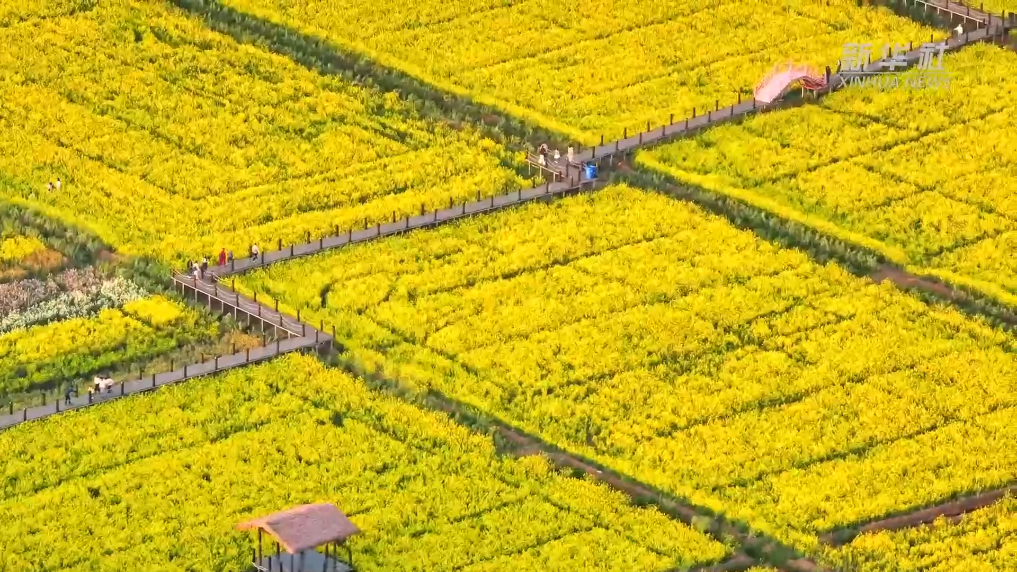 云南省昆明市晋宁区沙堤村、绿溪村和响水村的油菜花正在盛放,金黄遍野,吸引众多游客前来赏花踏青,尽享田园春光。
