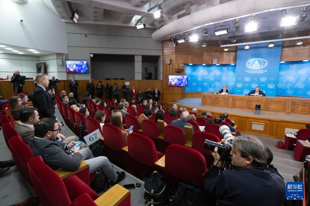 1月14日,在俄罗斯首都莫斯科,俄外长拉夫罗夫出席年度记者会。俄罗斯外交部长拉夫罗夫14日在莫斯科举行的年度记者会上表示,俄中关系是维护世界稳定的重要因素。新华社记者 白雪骐 摄
