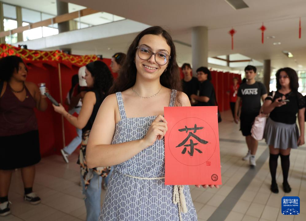 巴西学生杰茜卡·费雷拉举着自己写的“茶”字自豪地说:“今天我又了解了一种文化。茶与咖啡的活动也让中国朋友们更好了解巴西文化,非常有意义。”