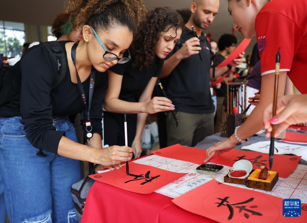 茶文化早已融入中国人的精神血脉,也成为不同文明交流互鉴的鲜活载体。在巡展开幕式的表演中,巴西学生身着汉服演示儒家茶礼。体验区内,巴西学生纷纷尝试用中国书法写下汉字“茶”。