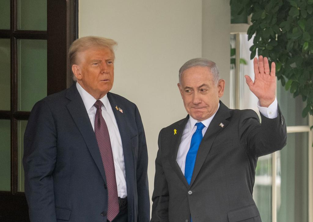9月29日,在美国首都华盛顿白宫,美国总统特朗普(左)迎接到访的以色列总理内塔尼亚胡。新华社记者胡友松摄