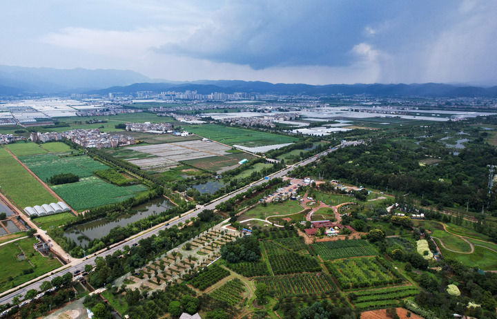 这是7月16日拍摄的澄江坝子一景(无人机照片)。新华社记者 陈欣波 摄