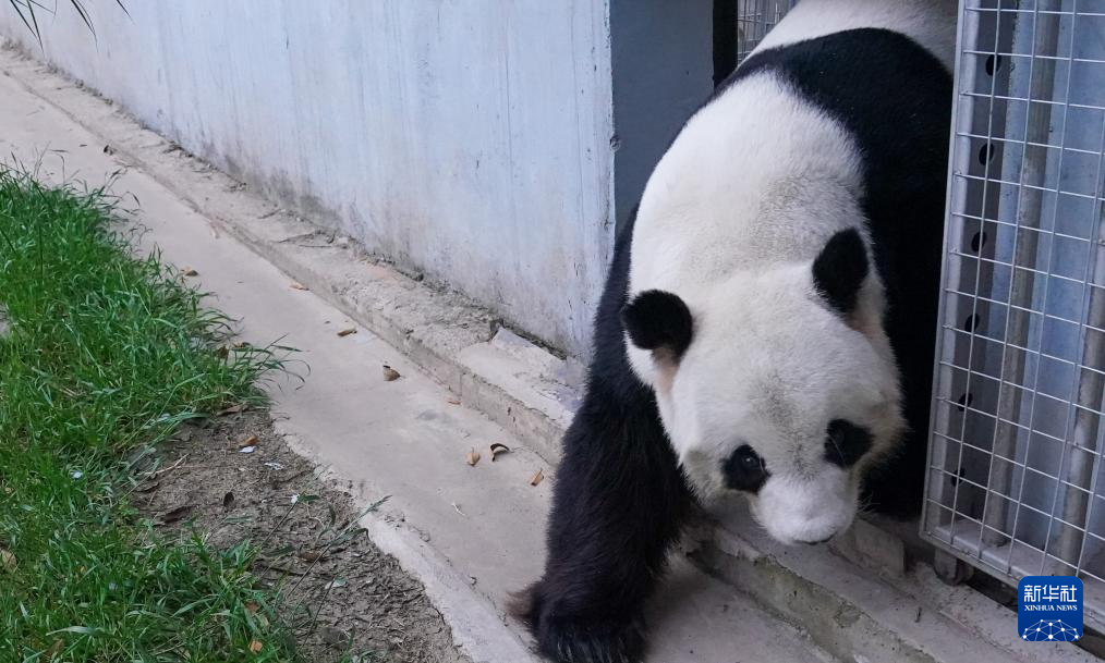 5月18日,在中国大熊猫保护研究中心雅安基地,大熊猫“凤仪”进入隔离圈舍。新华社发(李传有 摄)
