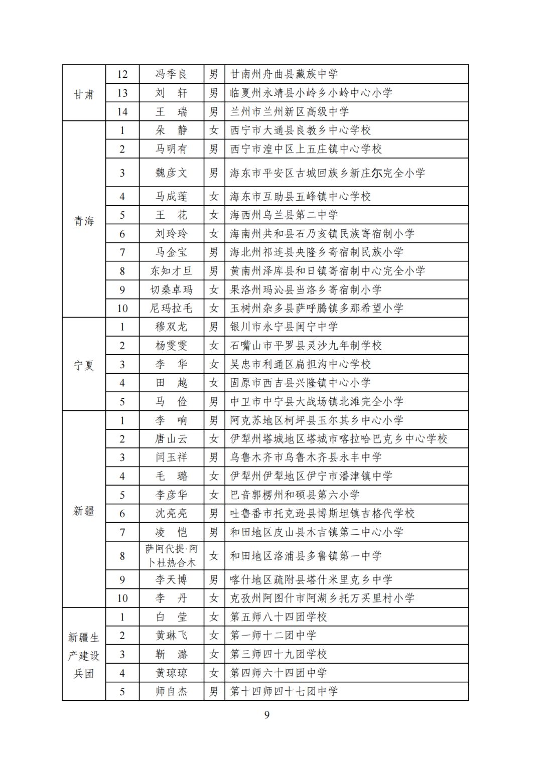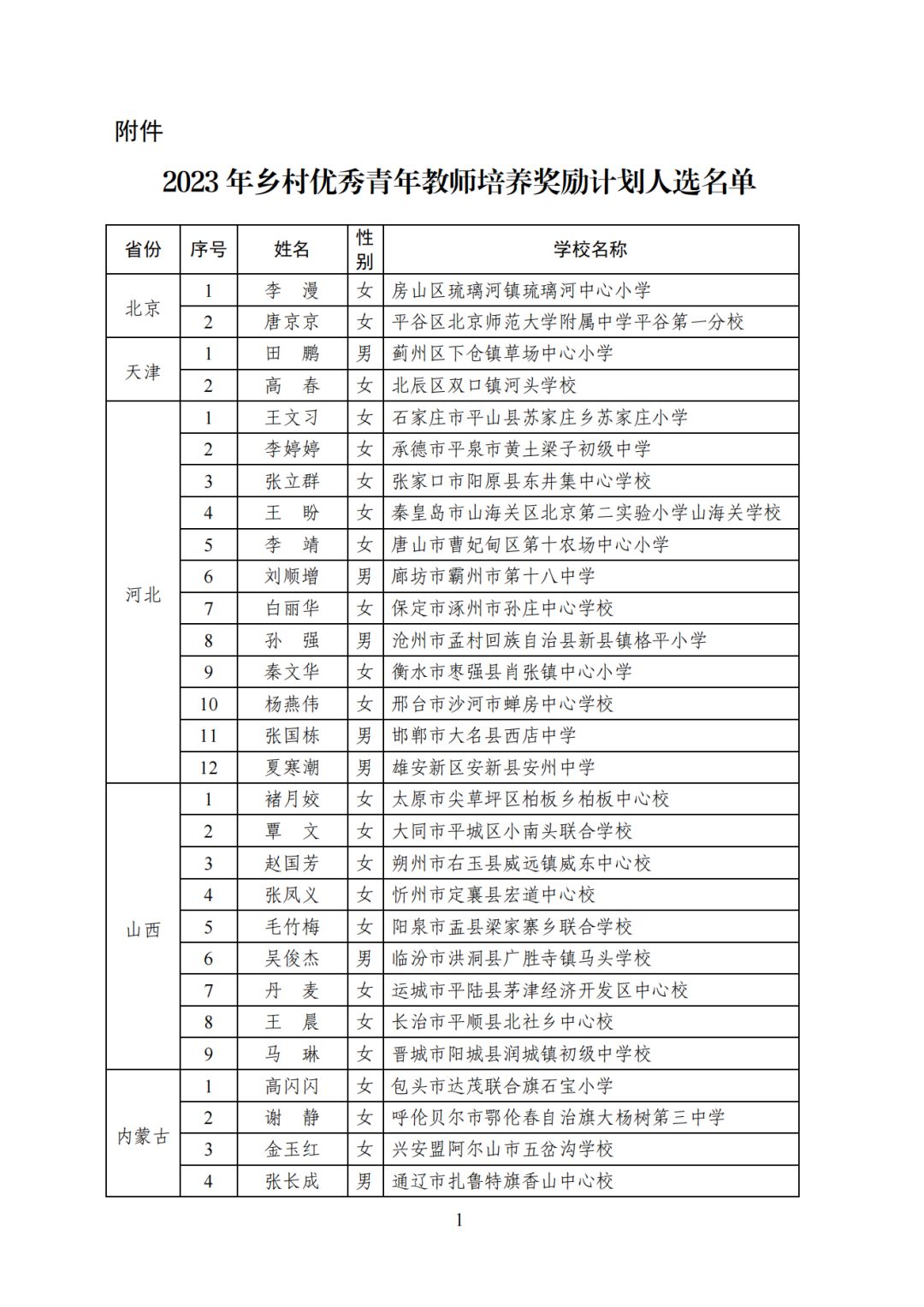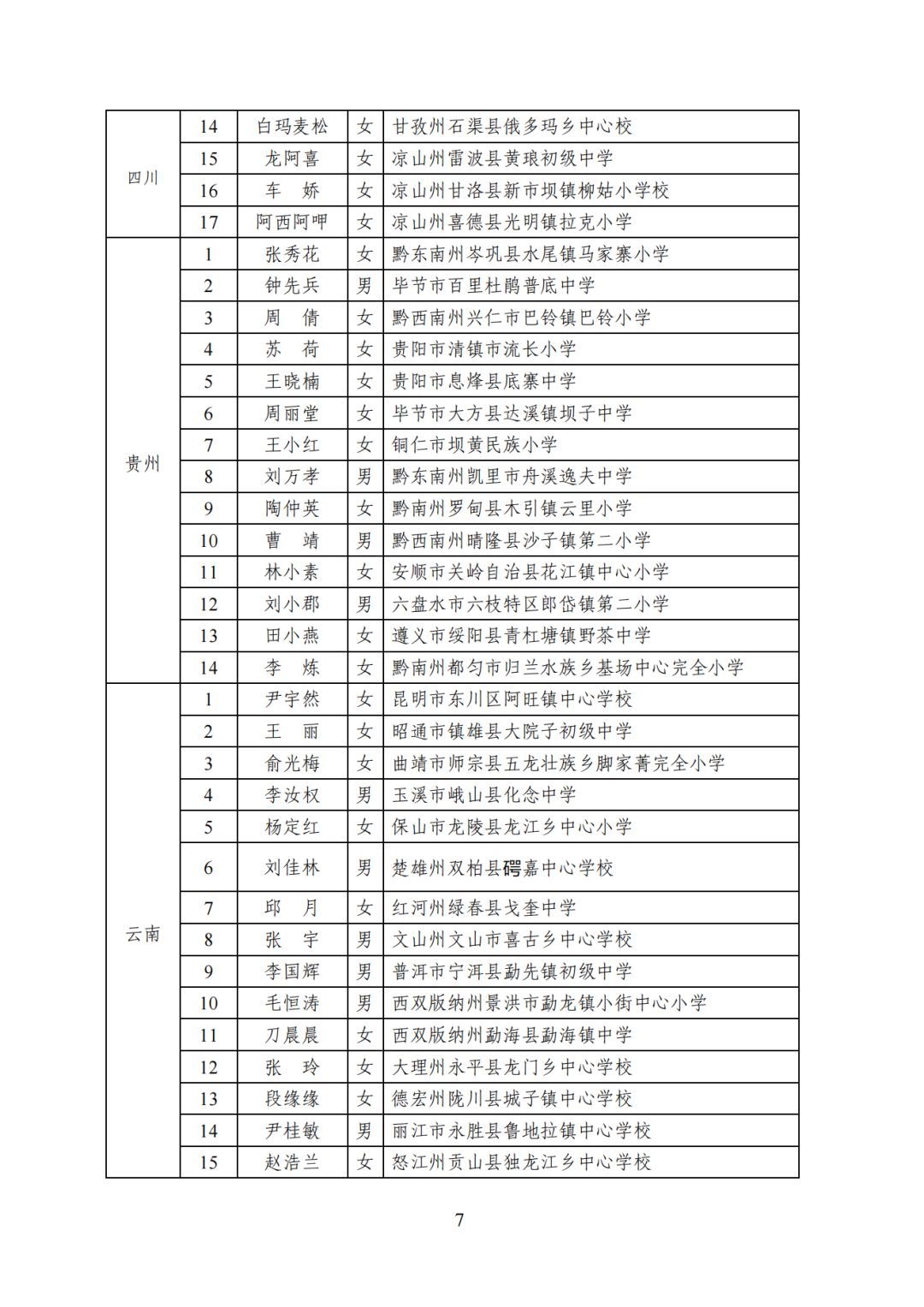2023年乡村优秀青年教师培养奖励计划人选名单: