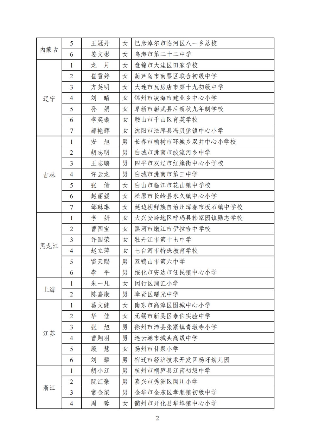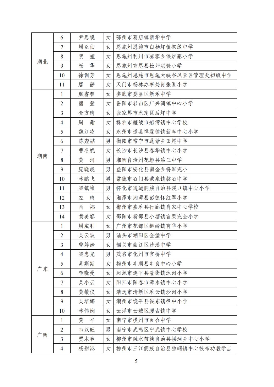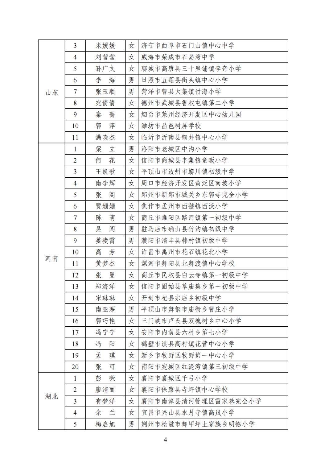 2023年乡村优秀青年教师培养奖励计划人选名单: