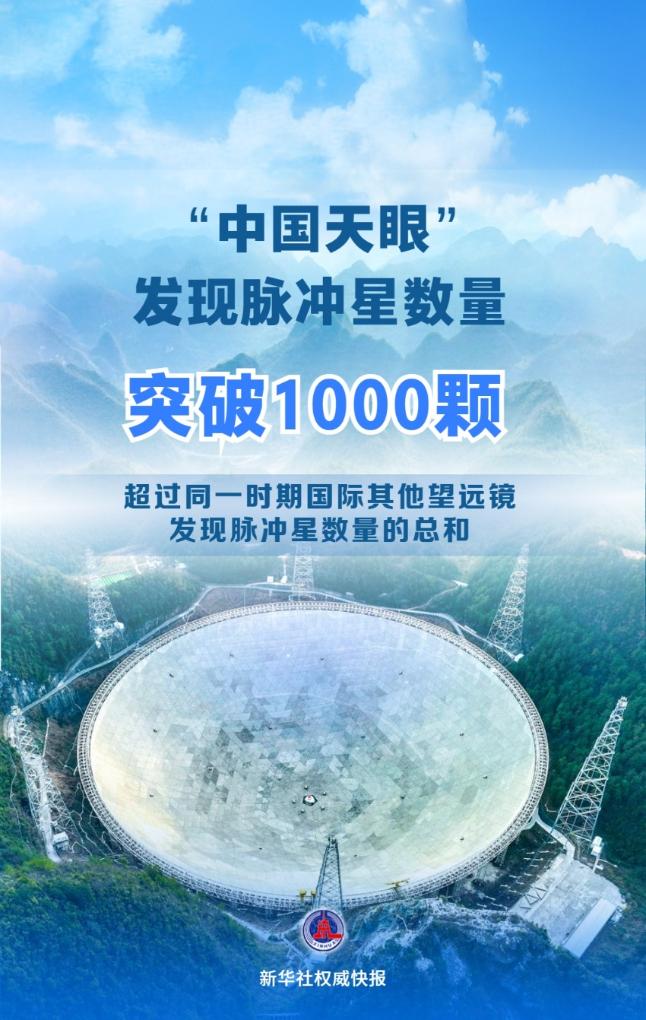 记者11月26日从中国科学院国家天文台获悉,“中国天眼”FAST发现脉冲星数量已突破1000颗,超过同一时期国际其他望远镜发现脉冲星数量的总和。