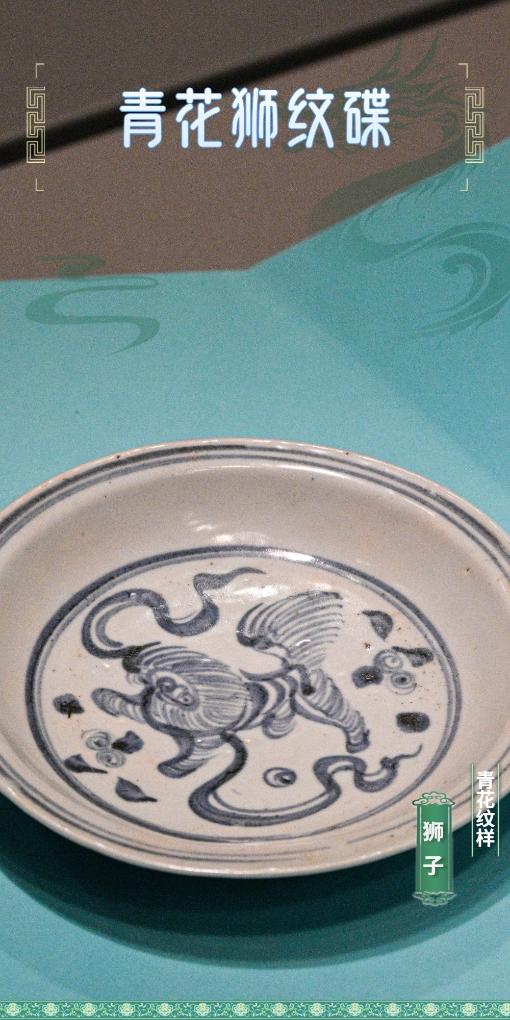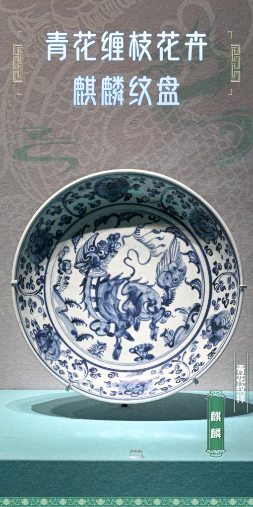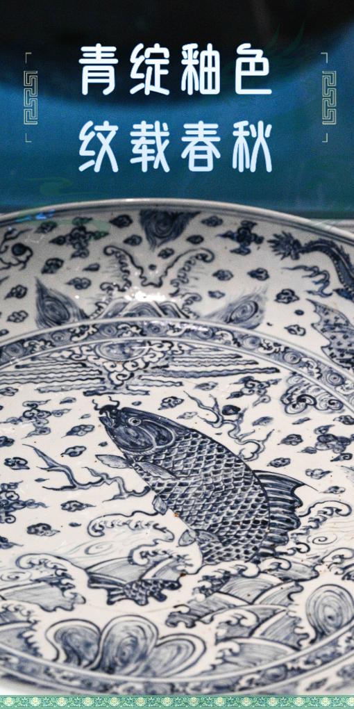 在这只青花鱼跃龙门应龙纹大盘内壁