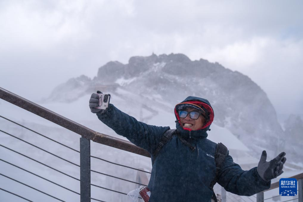 云南迪庆州香格里拉市石卡雪山是当地著名的生态文化旅游景区。连日来,石卡雪山银装素裹美景如画,吸引不少游客前来游玩观景。