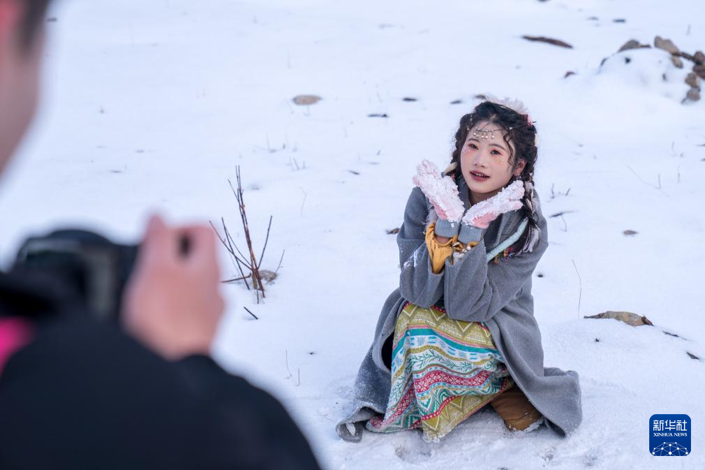 2月24日,游客在香格里拉市石卡雪山游玩观景。