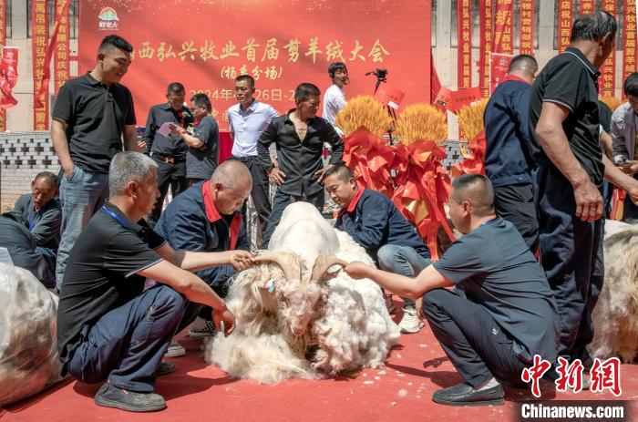 山西弘兴牧业科技有限公司举办了首届剪羊绒大会。王凤云 摄