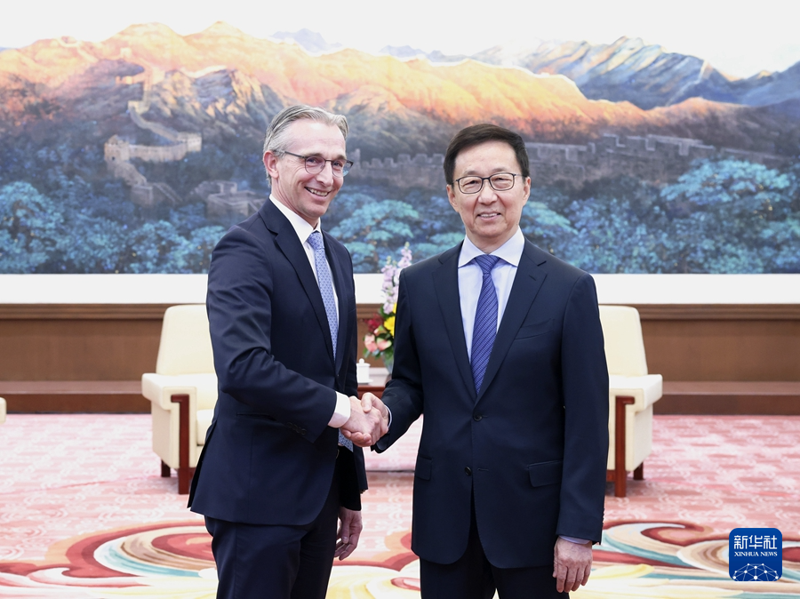 4月1日,国家副主席韩正在北京会见荷兰皇家飞利浦公司首席执行官贾博瑞。新华社记者 庞兴雷 摄