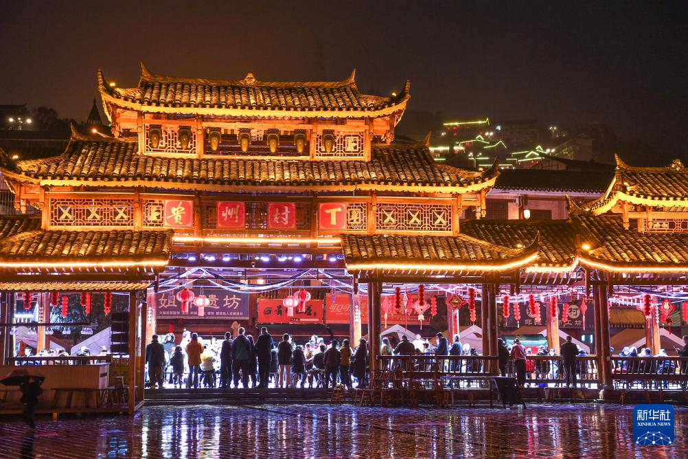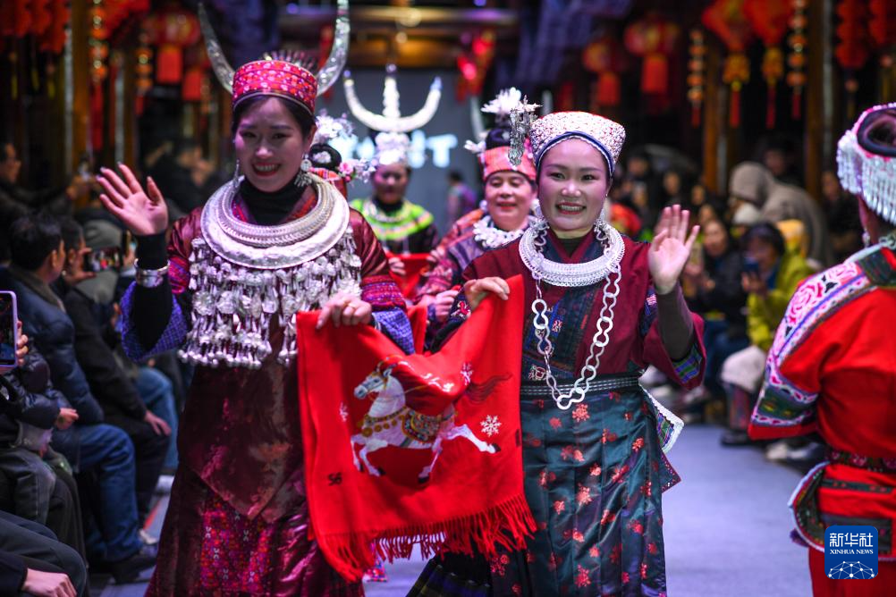 3月8日,人们在贵州省凯里市苗侗风情园观看“村T”民族服饰秀。