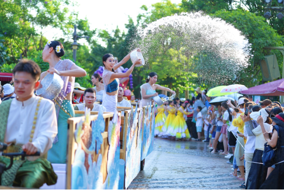 长沙方特“盛唐花火大会”的唐婚典礼、盛唐巡游、唐俑NPC看点十足,更有烟花剧《极乐之宴》震撼首演,为游客再现盛世繁华。南宁方特盛启“南洋风情嘉年华”,水灯盛会、天灯大典、壮婚典礼、泼水狂欢引爆假日狂欢,让游客尽享东南亚风情。此外,宁波、赣州等地方特东方欲晓乐园还将掀起年代复古热潮,实景重现“上海滩”民国风情。