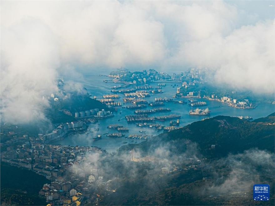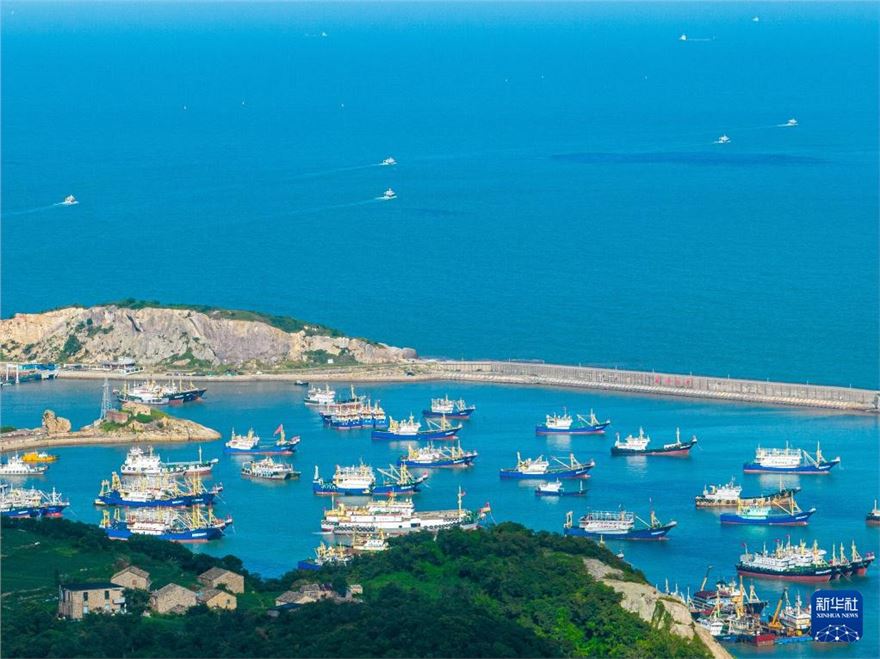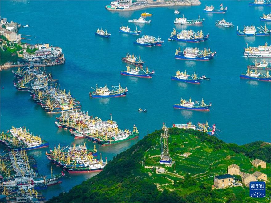 近日,浙江省温岭市石塘镇各渔港内,休渔的渔船和各类船只有序停泊,时而有船只往来穿行,在蓝天、碧海的映衬下,构成一幅夏日渔港美丽画卷。