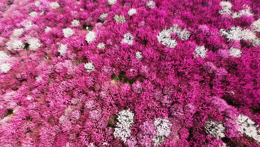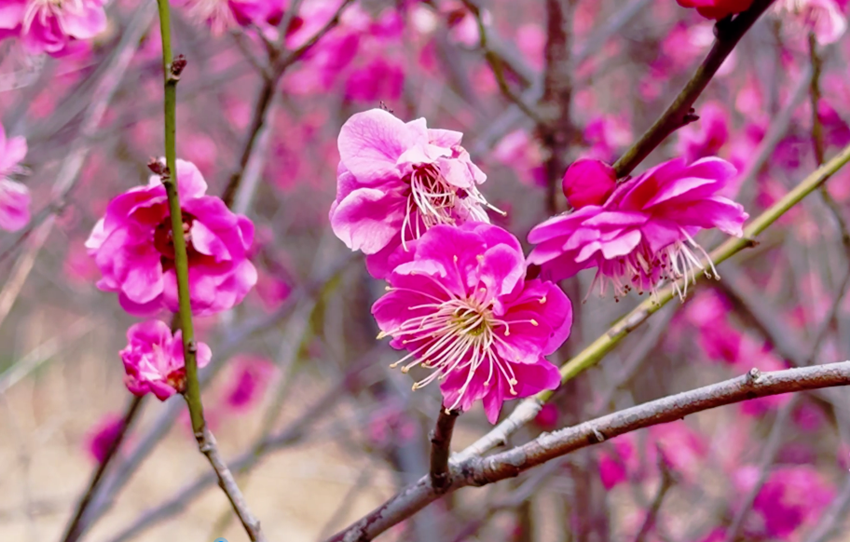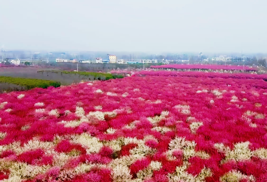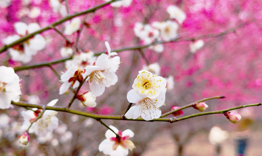 近日,安徽省太和县李兴镇400余亩梅花次第开放,如云似霞,与蓝天相映成画。(王东)