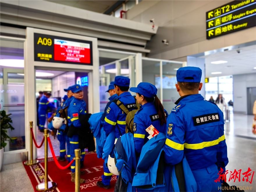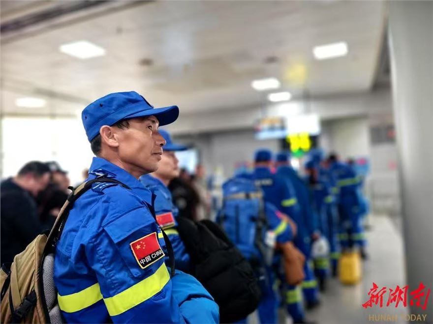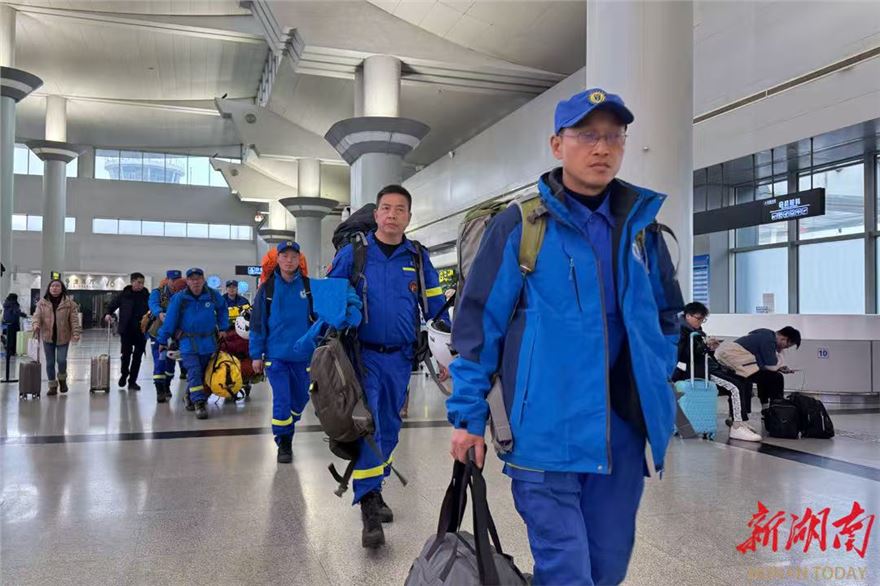 1月7日,长沙黄花国际机场,岳麓蓝天救援队队员准备登机。当天,该救援队精选10名具有高原救援经验和参加过地震救援的骨干队员组成应急救援小队,携带生命探测仪、蛇眼探测设备、增强型雷达及照明等专业救援装备奔赴西藏自治区日喀则市定日县6.8级地震灾区,投入救援工作。