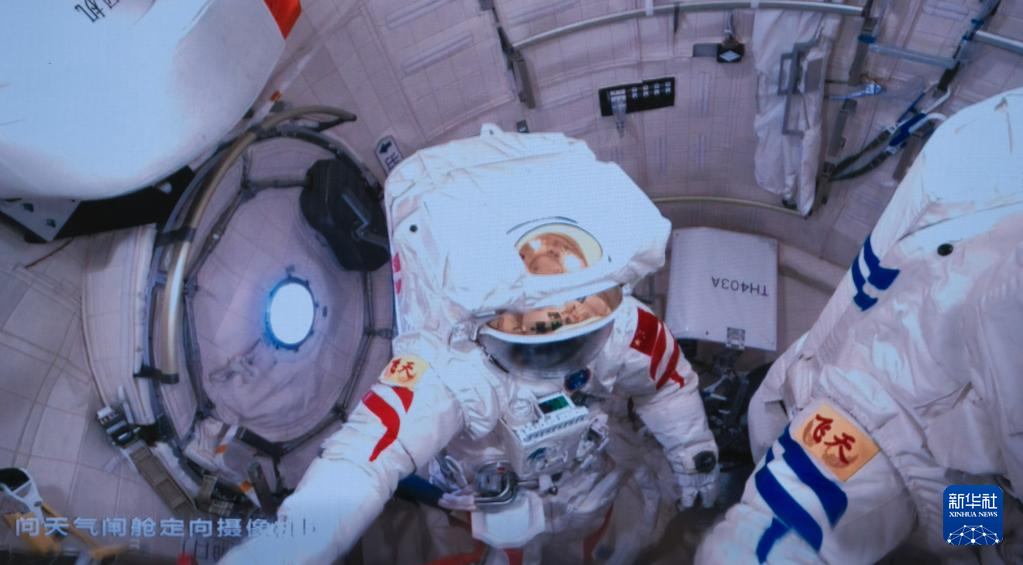 12月17日在北京航天飞行控制中心拍摄的神舟十九号航天员蔡旭哲出舱的画面。新华社记者 李杰 摄