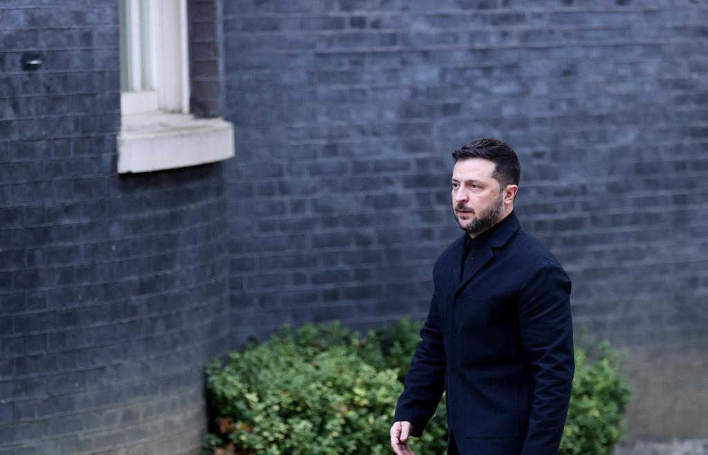10月24日,在英国伦敦,乌克兰总统泽连斯基走向唐宁街10号首相府。新华社记者李颖摄