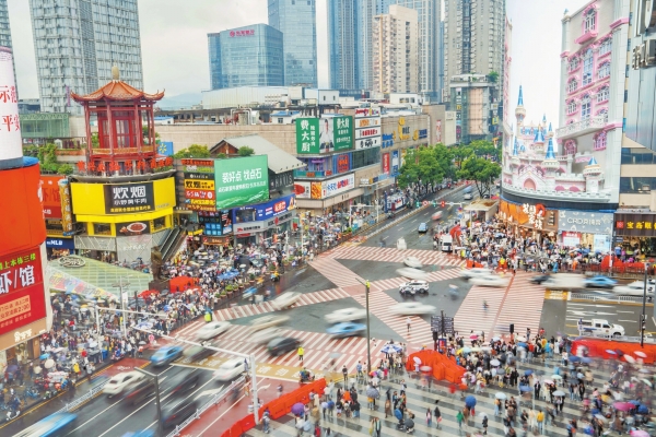 5月3日,黄兴路商业步行街前,熙熙攘攘,好不热闹。当天,长沙市众多商业街、购物中心人气爆棚。 华声在线全媒体记者 李健 摄