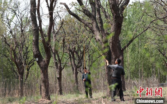 4月17日,农民在大白洋桥村古香椿园中采摘香椿。田博 摄