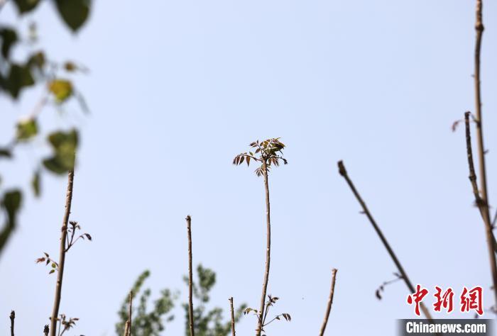 4月17日,大白洋桥村香椿树吐出新芽。田博 摄