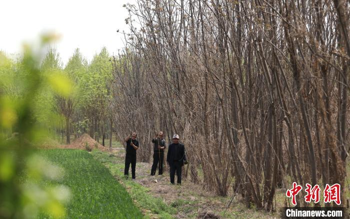 4月17日,农民在大白洋桥村的香椿园中采摘香椿。田博 摄