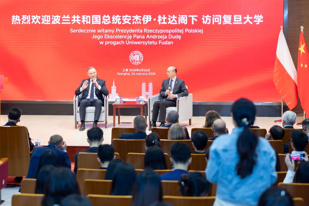 26日,波兰总统杜达与复旦大学师生展开交流。新华社记者王翔摄