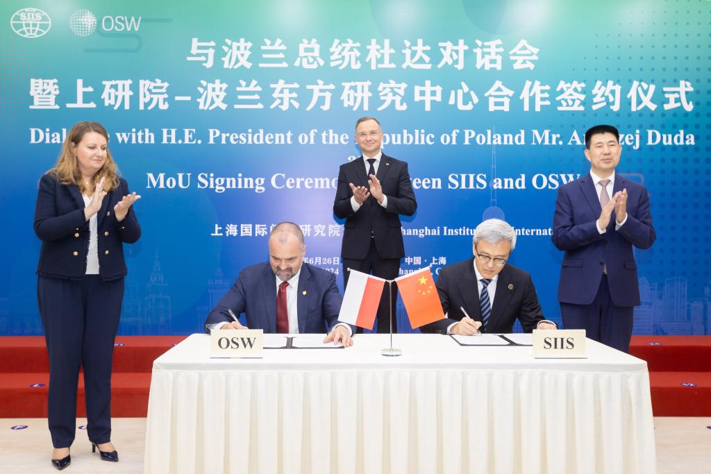 26日,波兰总统杜达在上海见证中波智库机构合作相关协议的签署。新华社记者王翔摄