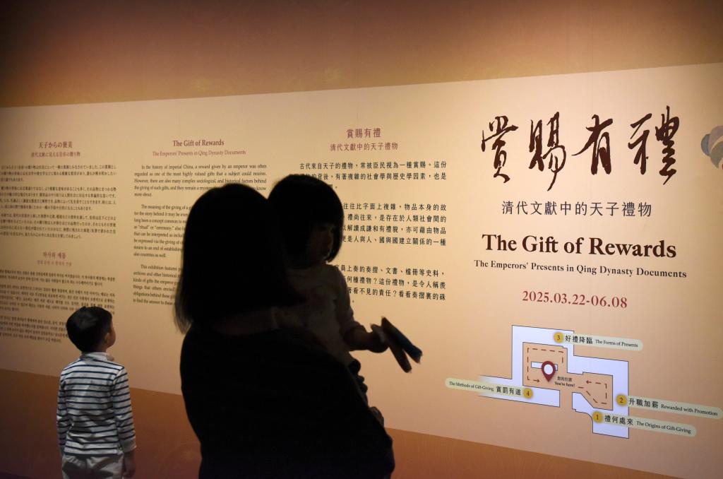 3月22日,游客在观看台北故宫博物院推出的“赏赐有礼——清代文献中的天子礼物”特展。新华社记者 刘斐 摄