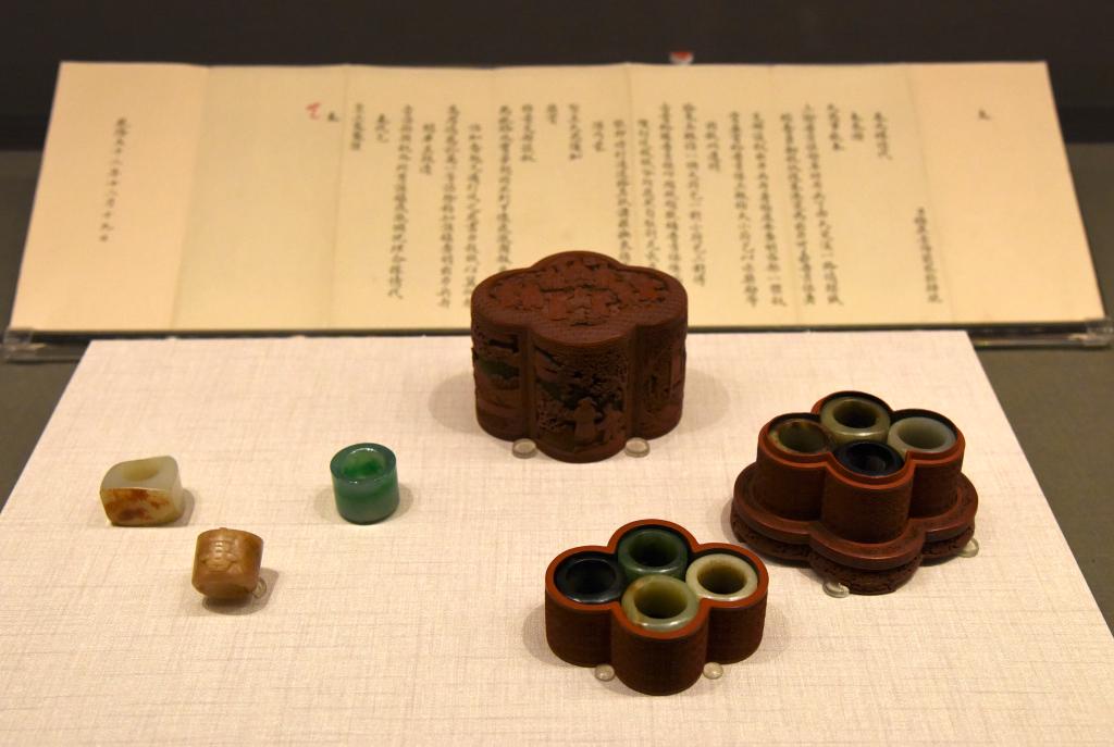 图为展出的各式扳指(3月22日摄)。新华社记者 刘斐 摄