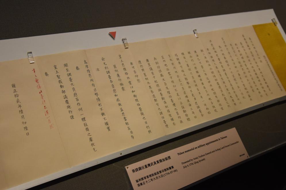 图为台北故宫博物院藏“奏请调任台湾武员赏赐加衔折”(3月22日摄)。新华社记者 刘斐 摄
