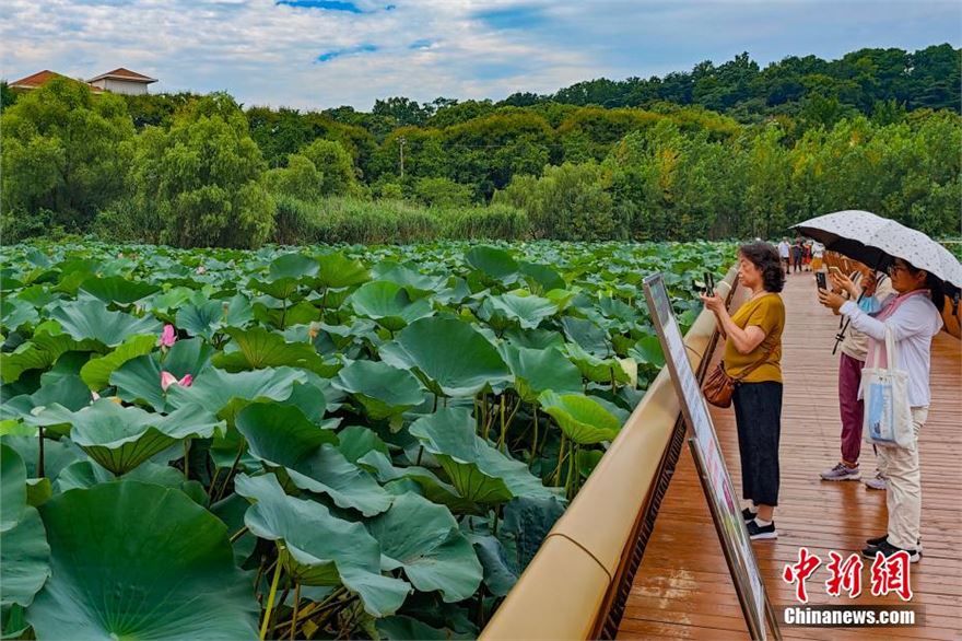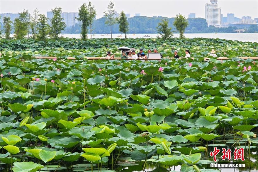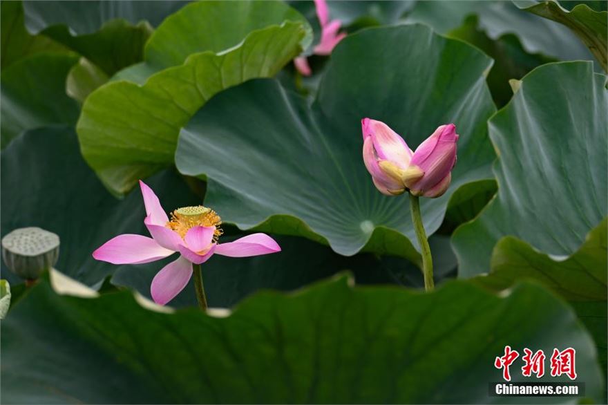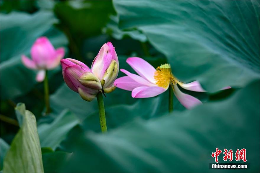 7月9日,江苏南京,玄武湖一株并蒂莲含苞待放。并蒂莲属荷花中的千瓣莲类,即一枝荷花双萼并蒂,是植物种类中难得一见的“双胞胎”,以其独特的造型和美好的寓意受到民众喜爱。
