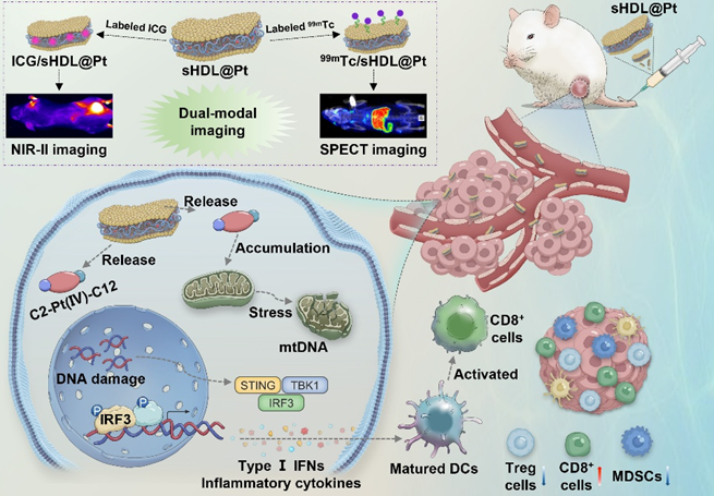 纳米盘载体(sHDL@Pt)科研示意图。(北京大学人民医院供图)