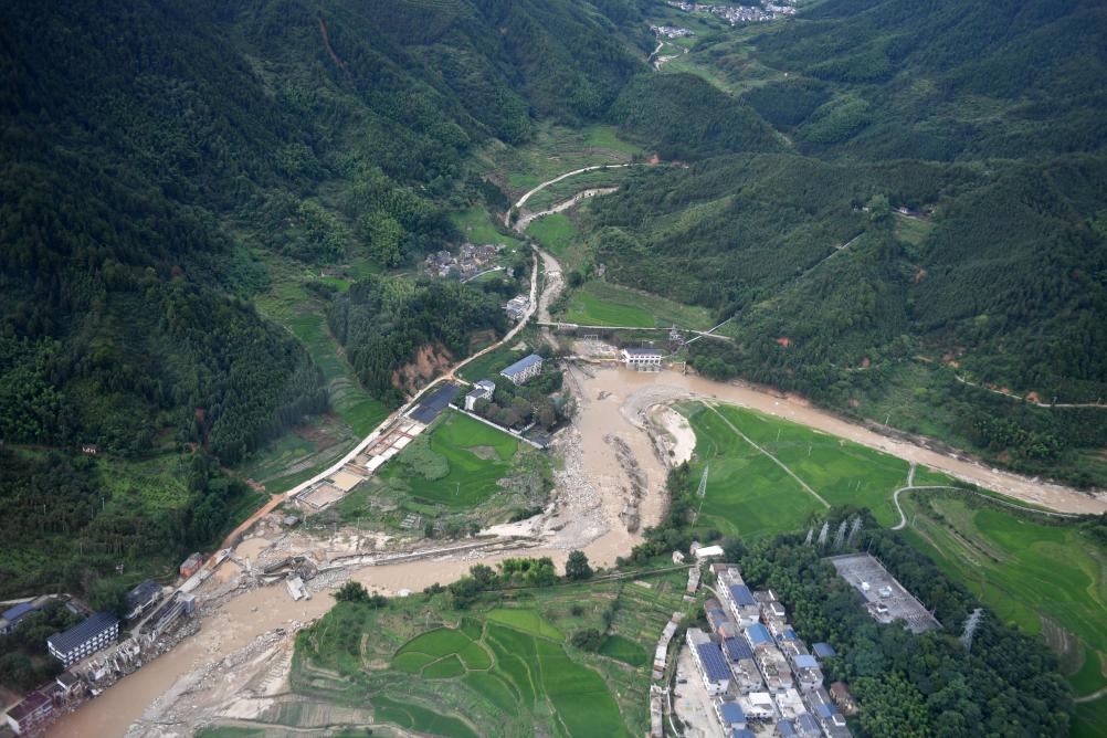 7月29日,这是从直升机上拍摄的资兴市部分乡镇受灾地点。新华社记者 陈振海 摄