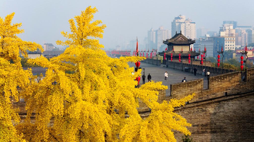 游客在西安城墙上散步(2024年11月6日摄)。新华社记者 邹竞一 摄