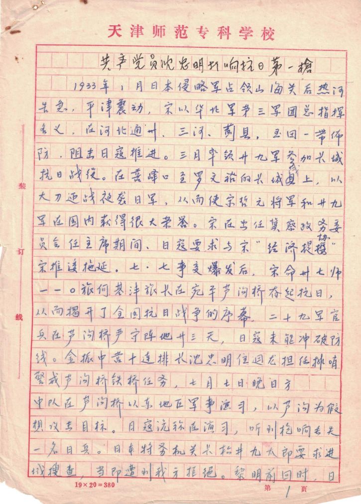 《共产党员沈忠明打响抗日第一枪》一文原稿。新华社发