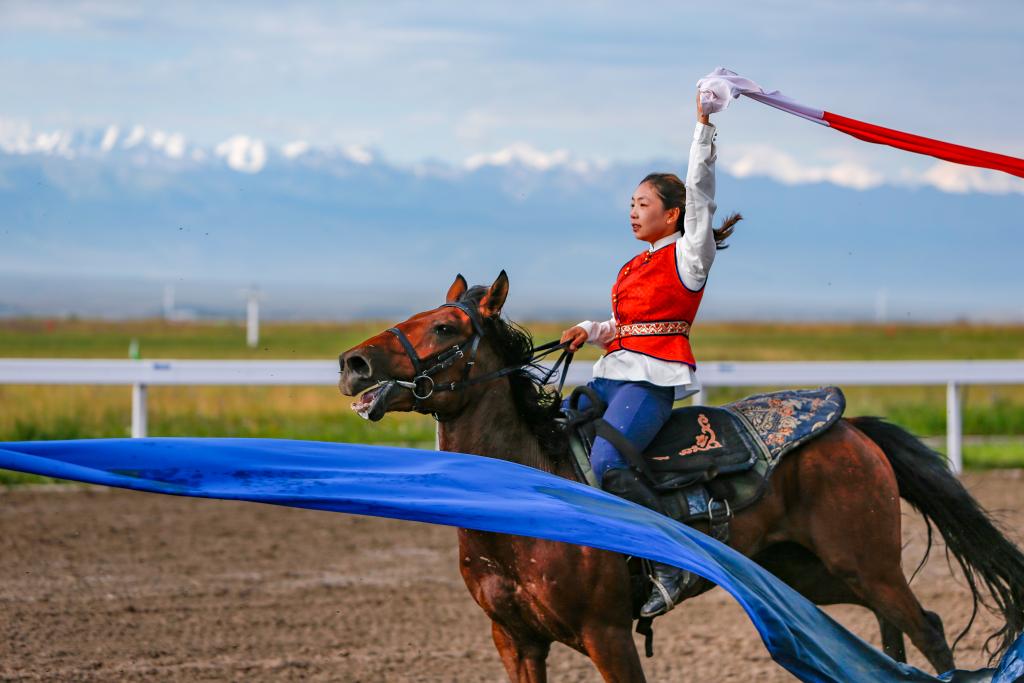 新华社乌鲁木齐7月10日电(记者孙哲、刘博、阿曼)马术表演,是力与美的绚烂交织,更是中华马文化的生动诠释。第十二届全国少数民族传统体育运动会马上项目的比赛正在新疆维吾尔自治区昭苏县举行,各民族参赛者纵马驰骋,通过种类繁多的表演项目展示民俗文化,增进彼此了解。