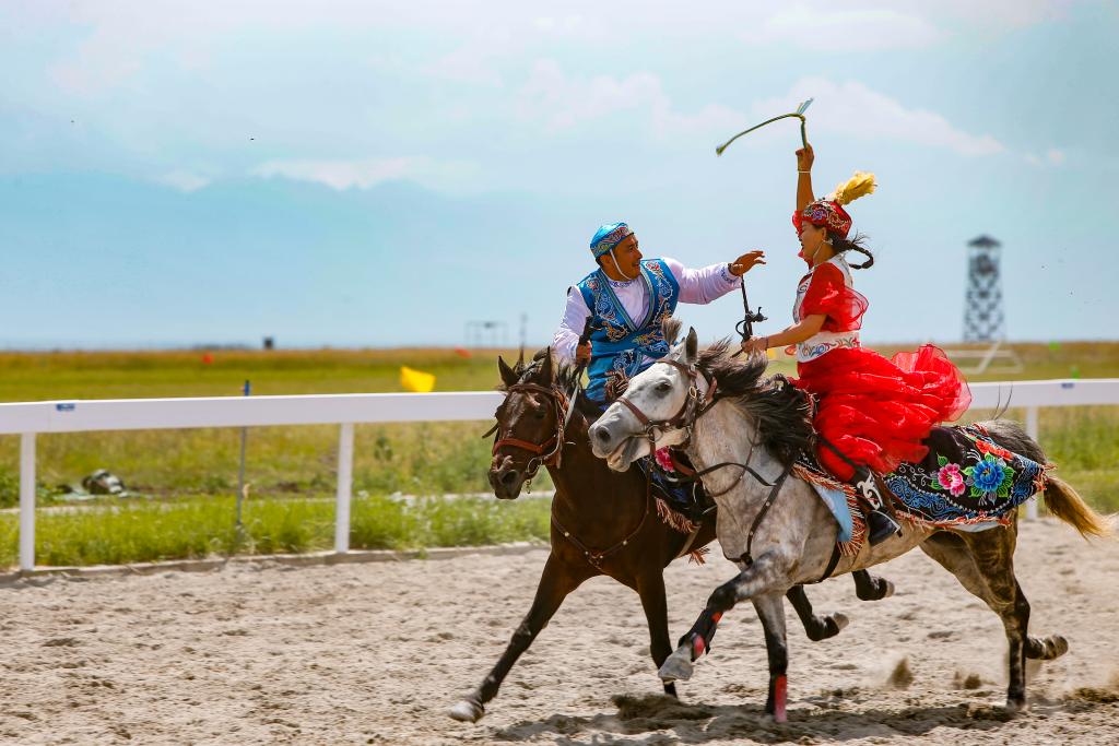 “姑娘追”原先是哈萨克族男女青年的一种恋爱方式,即姑娘骑马追上心爱的青年,用皮鞭轻轻抽打他,来表达爱意。在各民族文化的互鉴融通中,现如今,“姑娘追”已成为一项饶有风趣的群众性体育活动,不断传承发展、枝繁叶茂。
