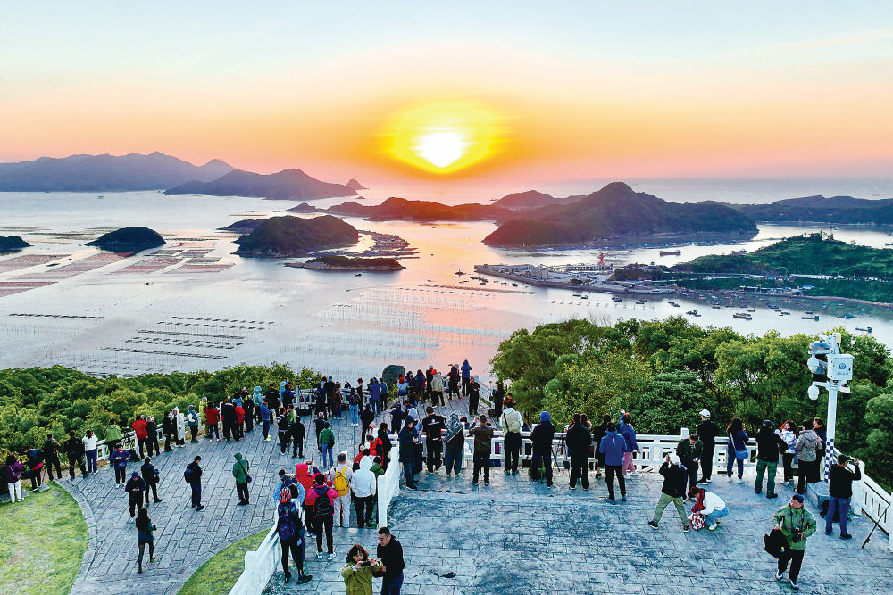 2024年11月29日,游客在霞浦县三沙镇花竹村观赏日出。
