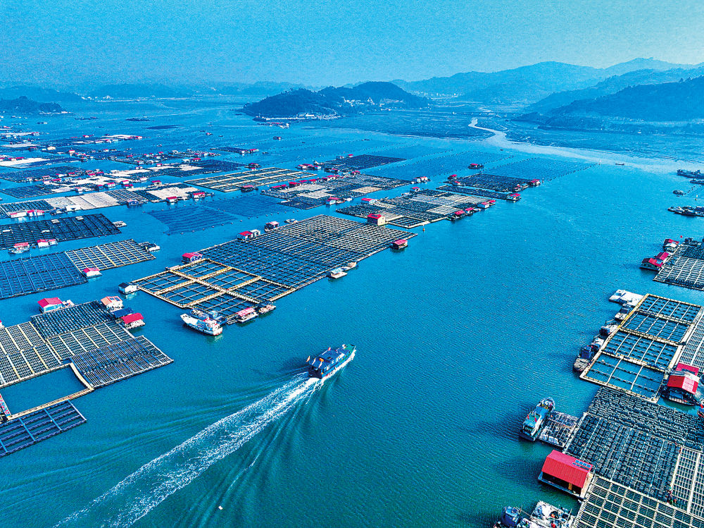 船只行驶在霞浦县海上养殖区(2024年1月11日摄)。