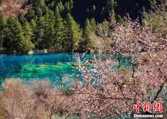 近日,九寨沟景区野桃花迎来盛放期,漫山遍野如诗如画。从九寨沟景区沟口开始,粉色逐渐向上蔓延,绽放出一片片绚丽的桃花海,粉嫩的花瓣在微风中轻轻摇曳,与周围的景色相互呼应,构成了一幅幅生动而多彩的自然油画。