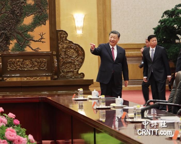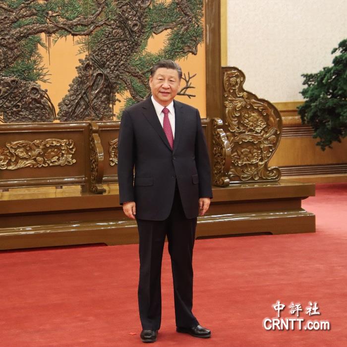 中共中央总书记习近平笑容满面地与媒体记者亲切互动。(中评社 林艳摄)
